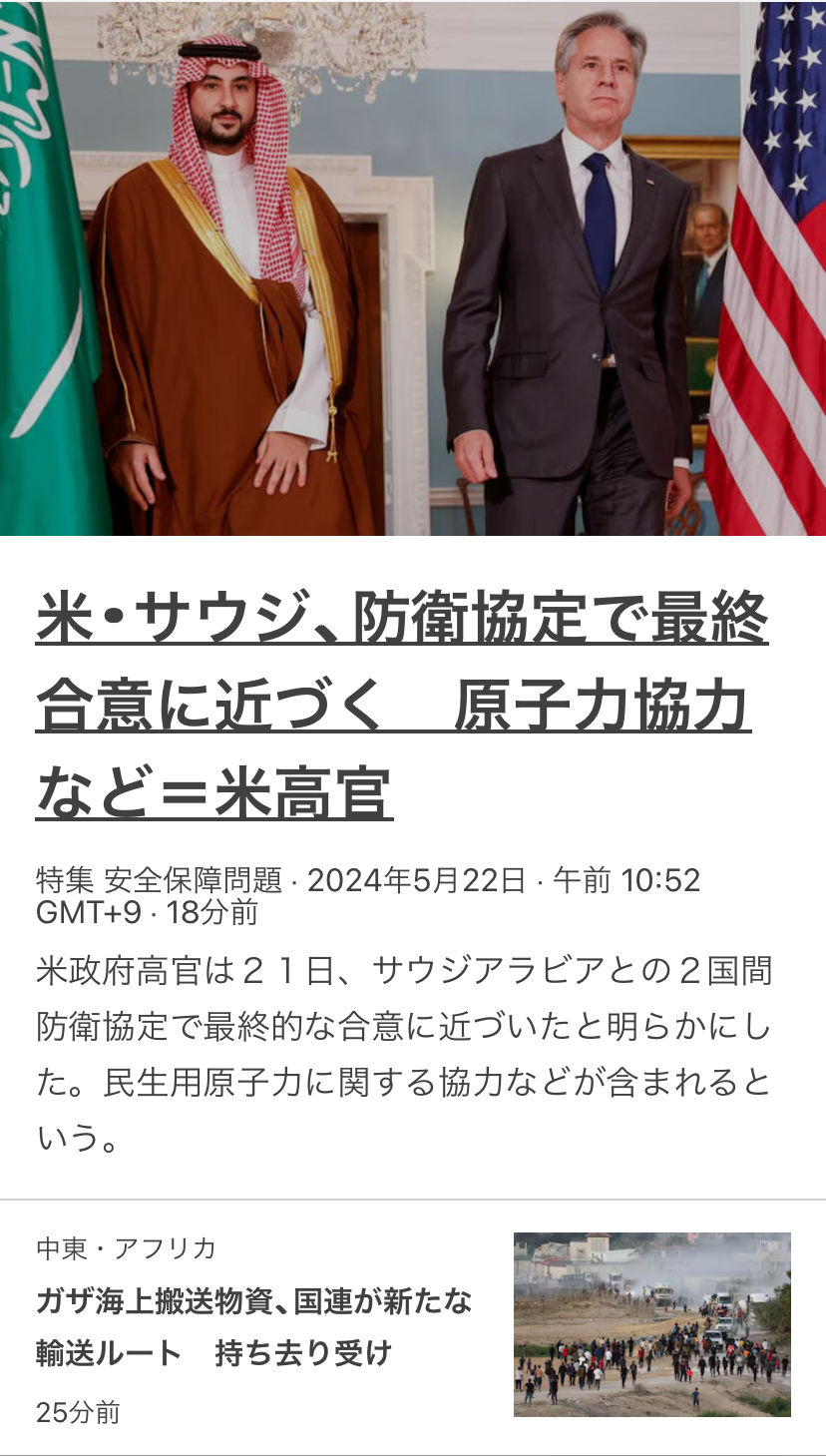 米・サウジ、防衛協定で最終合意に近づく 原子力協力など=米高官
